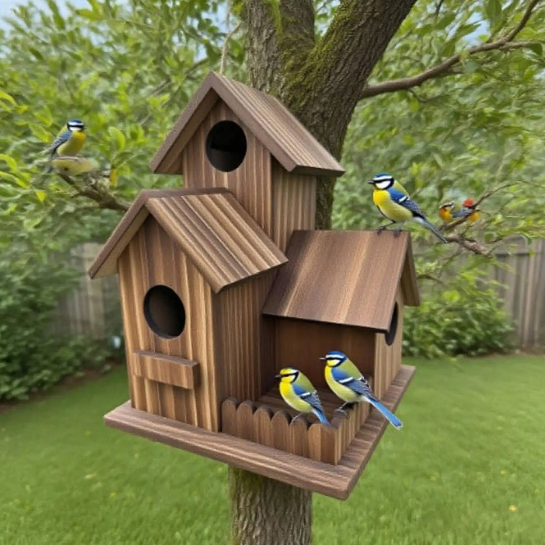 Wooden Bird House Weather Resistant Outdoor Hanging Birdhouse Large Nest for Hummingbird Garden Backyard Decoration