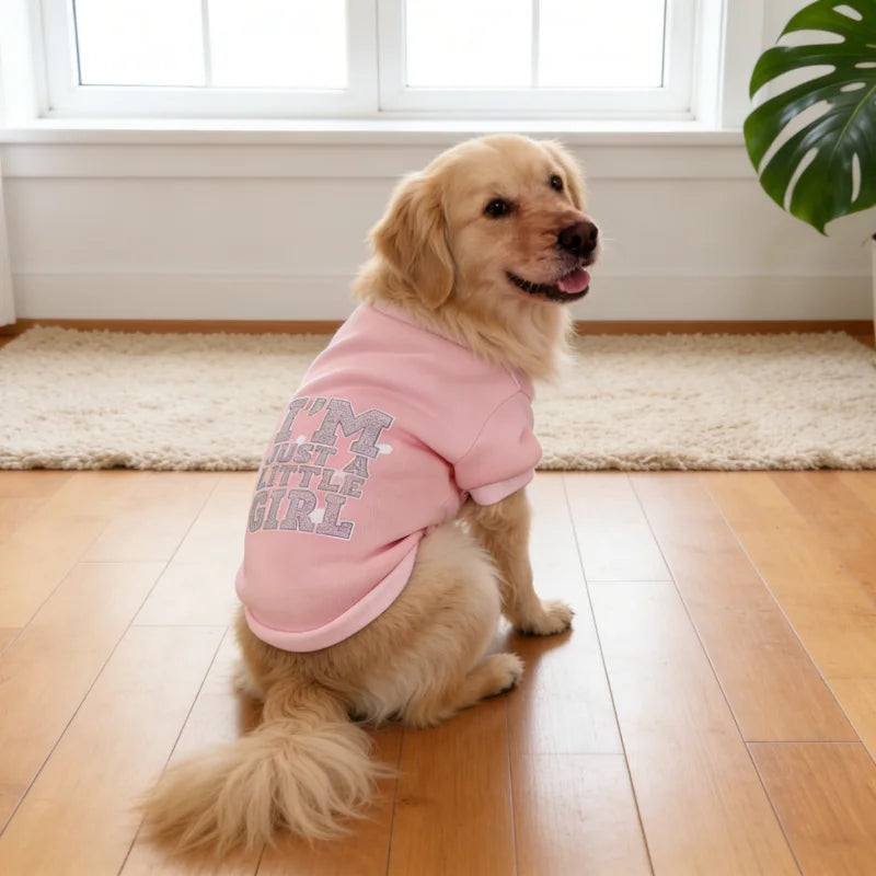 1pc Cute Letter Print Pet Sweatshirt for Dogs & Cats - Soft Pink Pullover with Ribbed Cuffs, Striped Paw Design, Dog Sweater