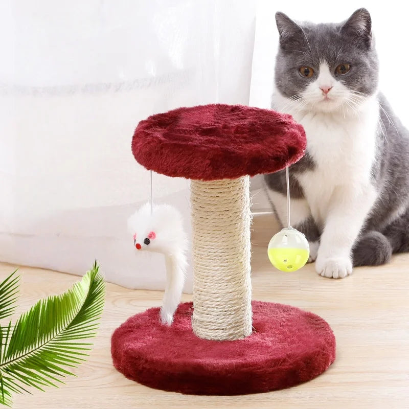 2-Level Cat Tree with Scratching Posts, Plush Toys, and Jumping Platform with Scratching Posts, Plush Toys, and Perch