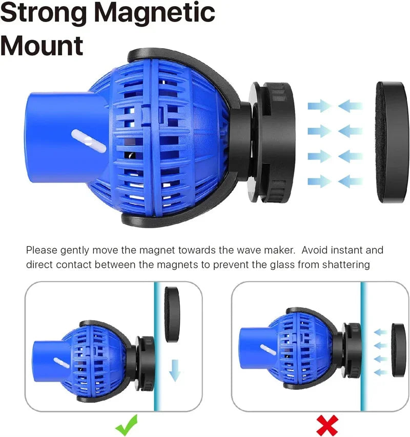 220V 6-26W Aquarium Wave Maker Submersible Circulation Power Pump with Magnet Suction Base Adjustable Flow Rate Marine Fish Tank