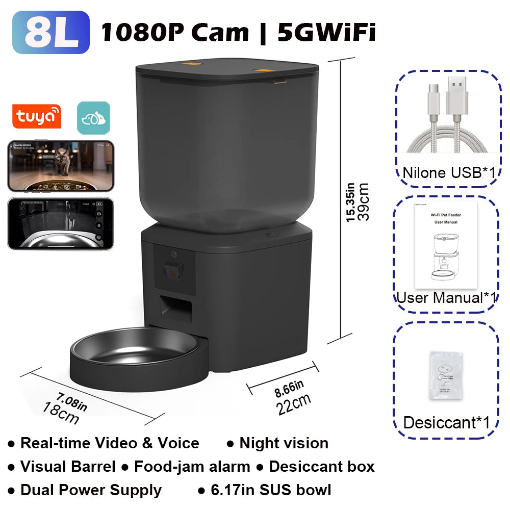 270oz Automatic Cat Feeder With 1080p Camera Video 5G WiFi Cat Food Dispenser Pet Smart Voice Recorder Tuya APP Pet Auto Feeder