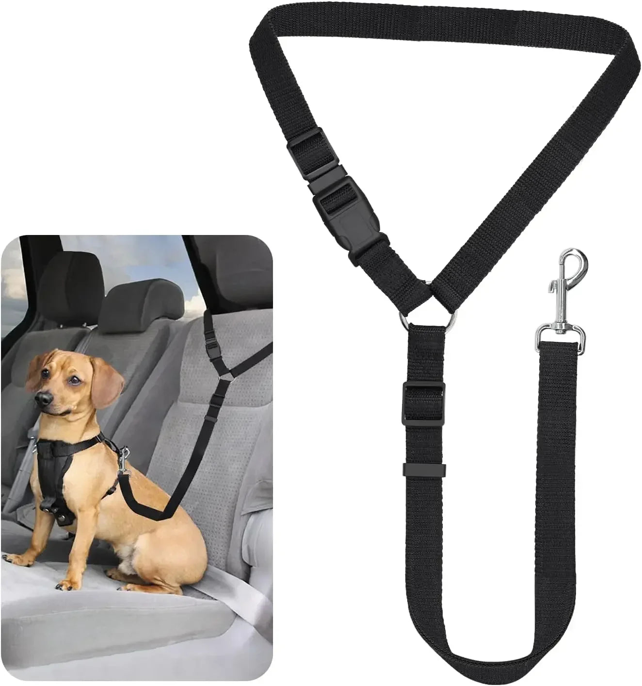 3 in 1 Pet Dog Car Seatbelt Leash, Retractable Restraint Secures to Vehicle Headrest & Dog Seatbelt Tether with Poop Bag Holder
