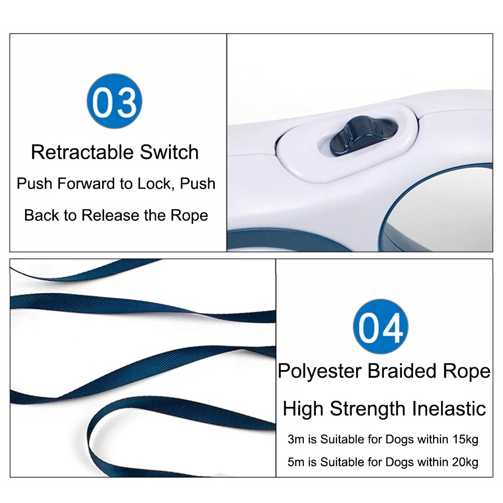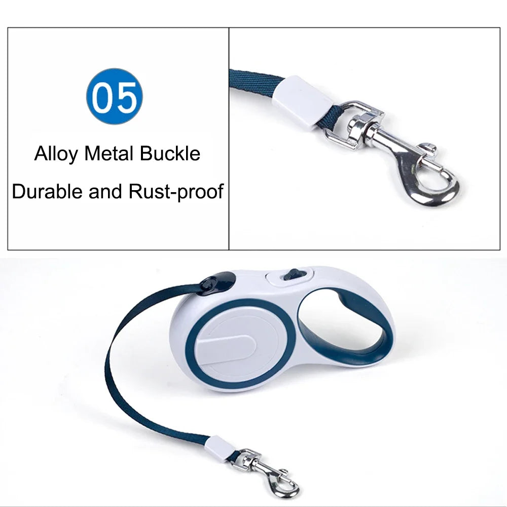 5M Retractable Nylon Leash for Small Dogs and Cats Durable Automatic Tension Control for Outdoor Walking Hiking Travel