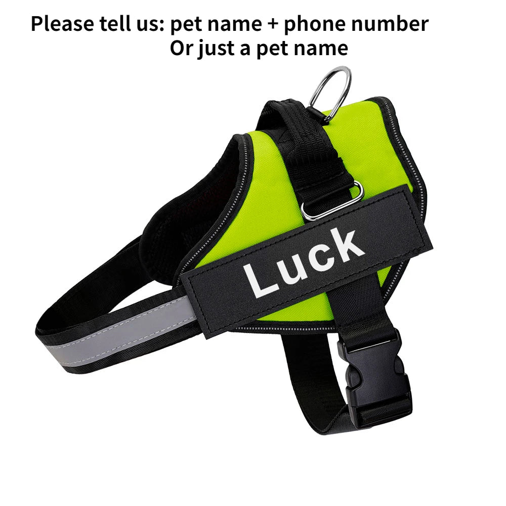 Adjustable Nylon Dog Harness Personalized Harness For Dogs Reflective Breathable Neck Guard Dog Harness Vest NO PULL Dog tag