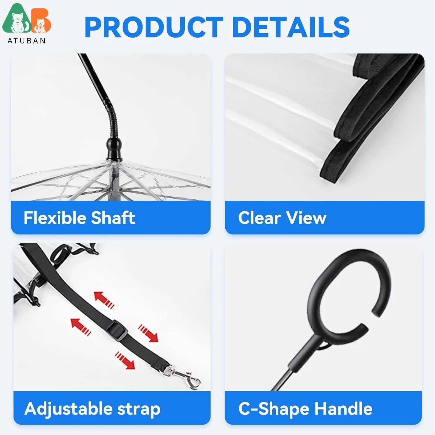 ATUBAN Dog Umbrella with Leash, Pet Umbrella for Dogs Adjustable Handle Dog Umbrella for Small Pets, Adjustable Rope Leash