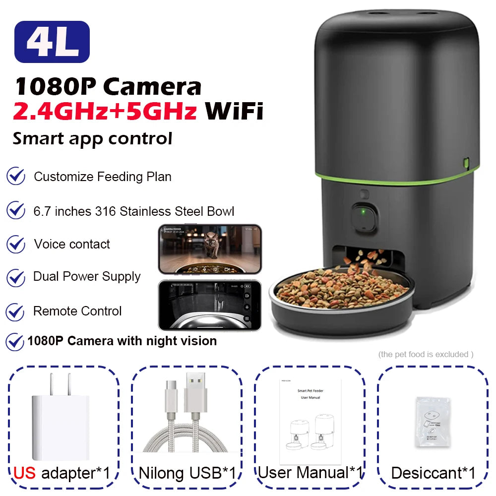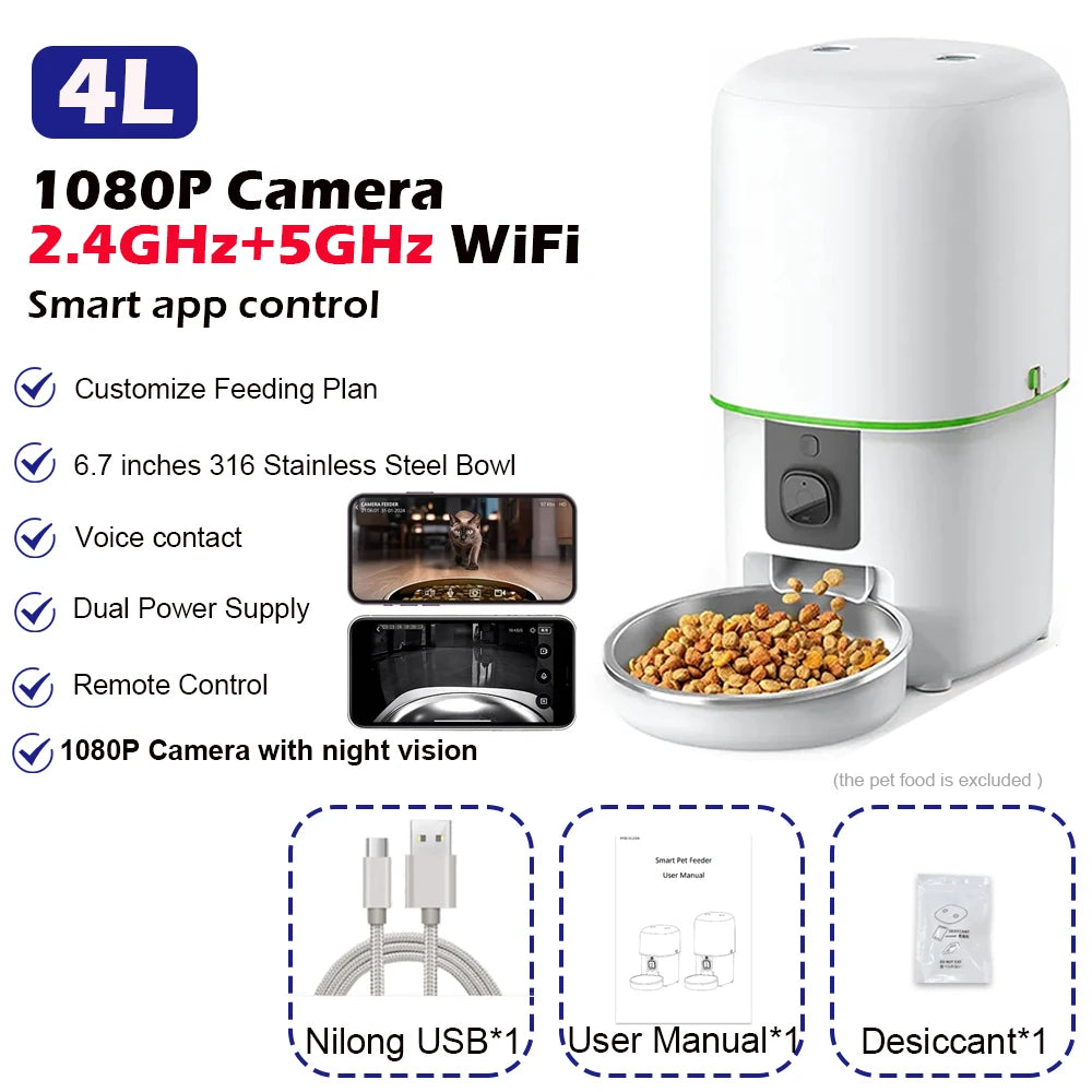 Automatic Cat Feeder Camera Furpipi Pet Smart Cat Food Kibble Dispenser Tuya Control WiFi Auto Feeder For Cats Dog Accessories