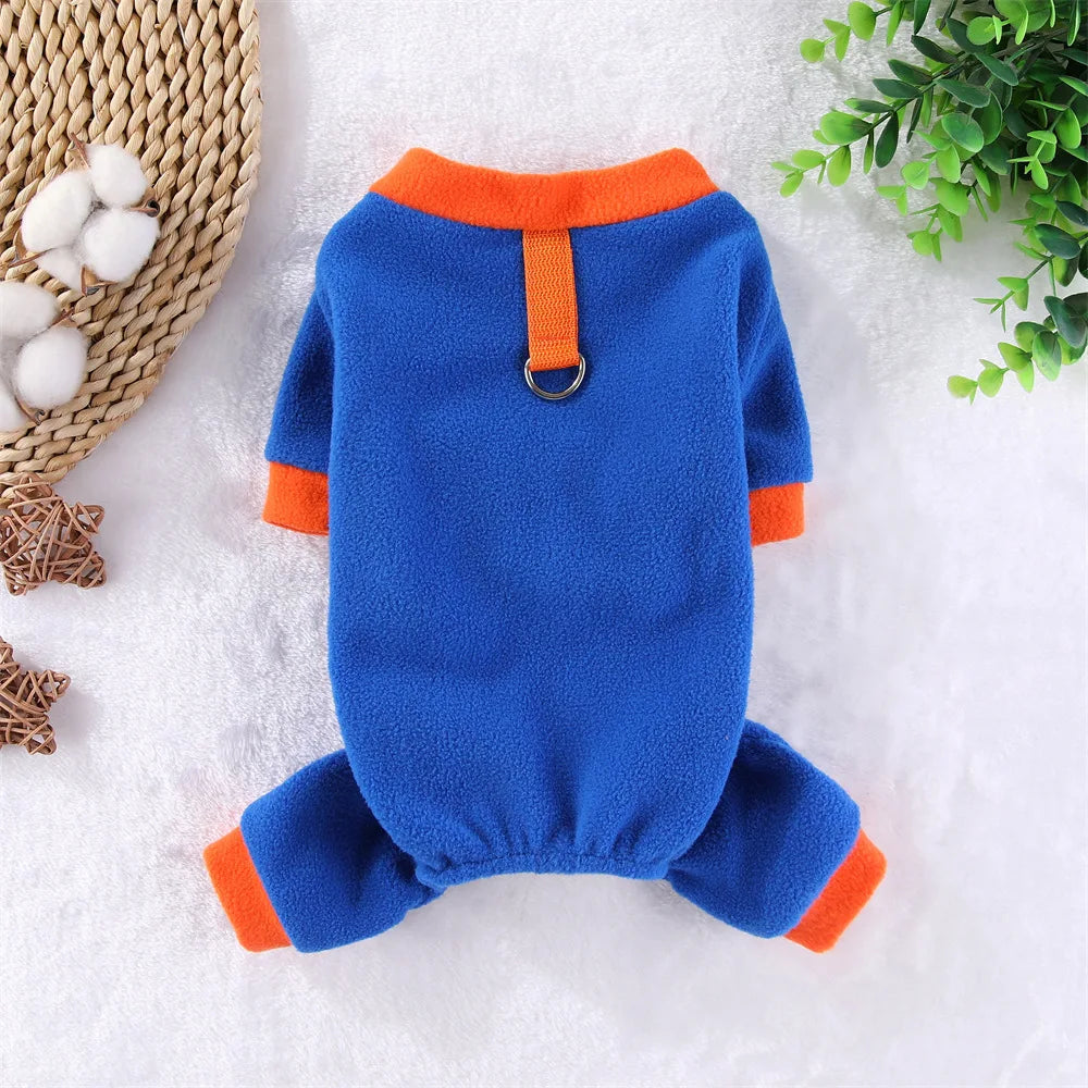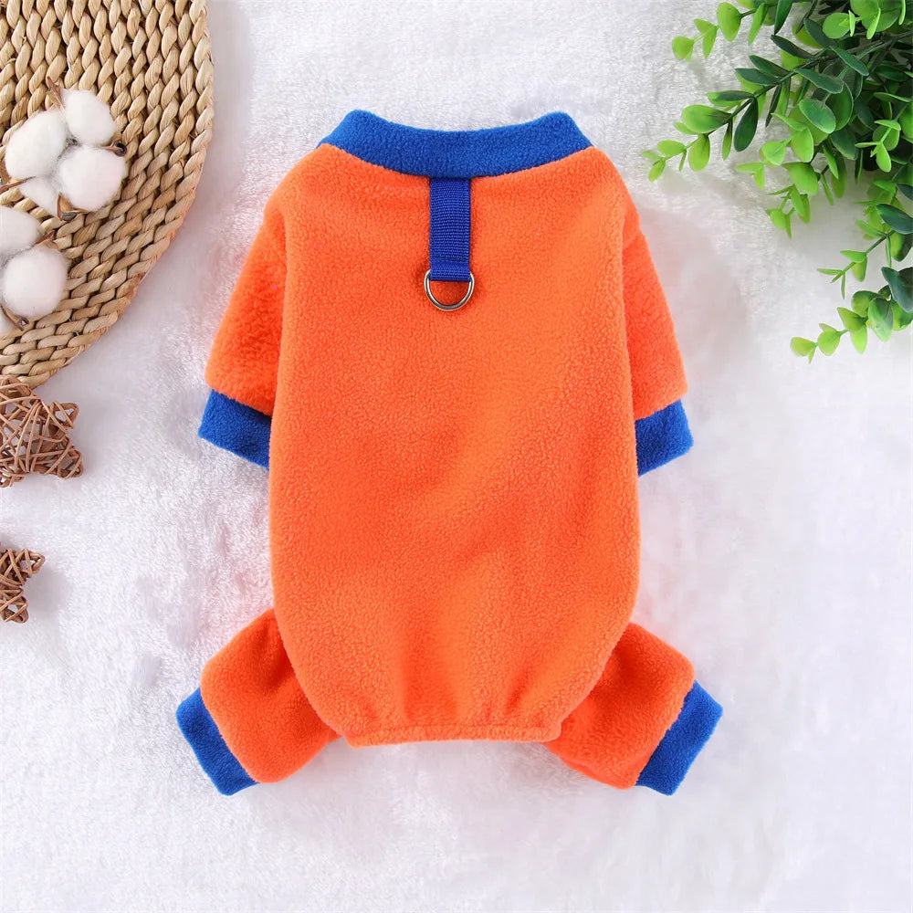 Autumn Winter Dog Warm Fleece Jumpsuit Pet Clothes Dog Hoodies Soft Coat for Small Medium Dog Puppy Cat Clothing with Leash Ring