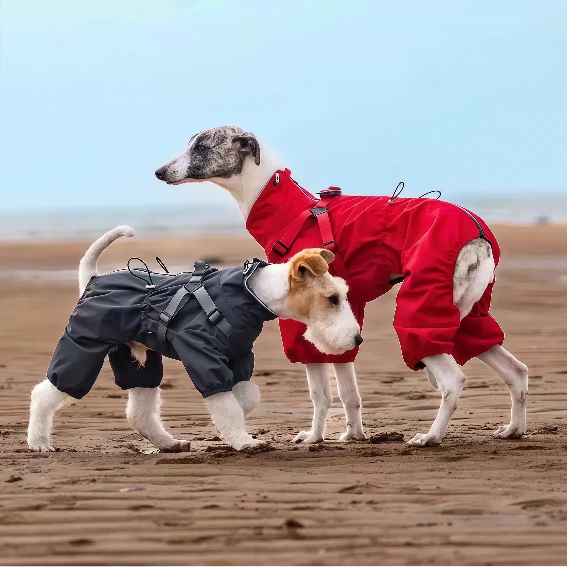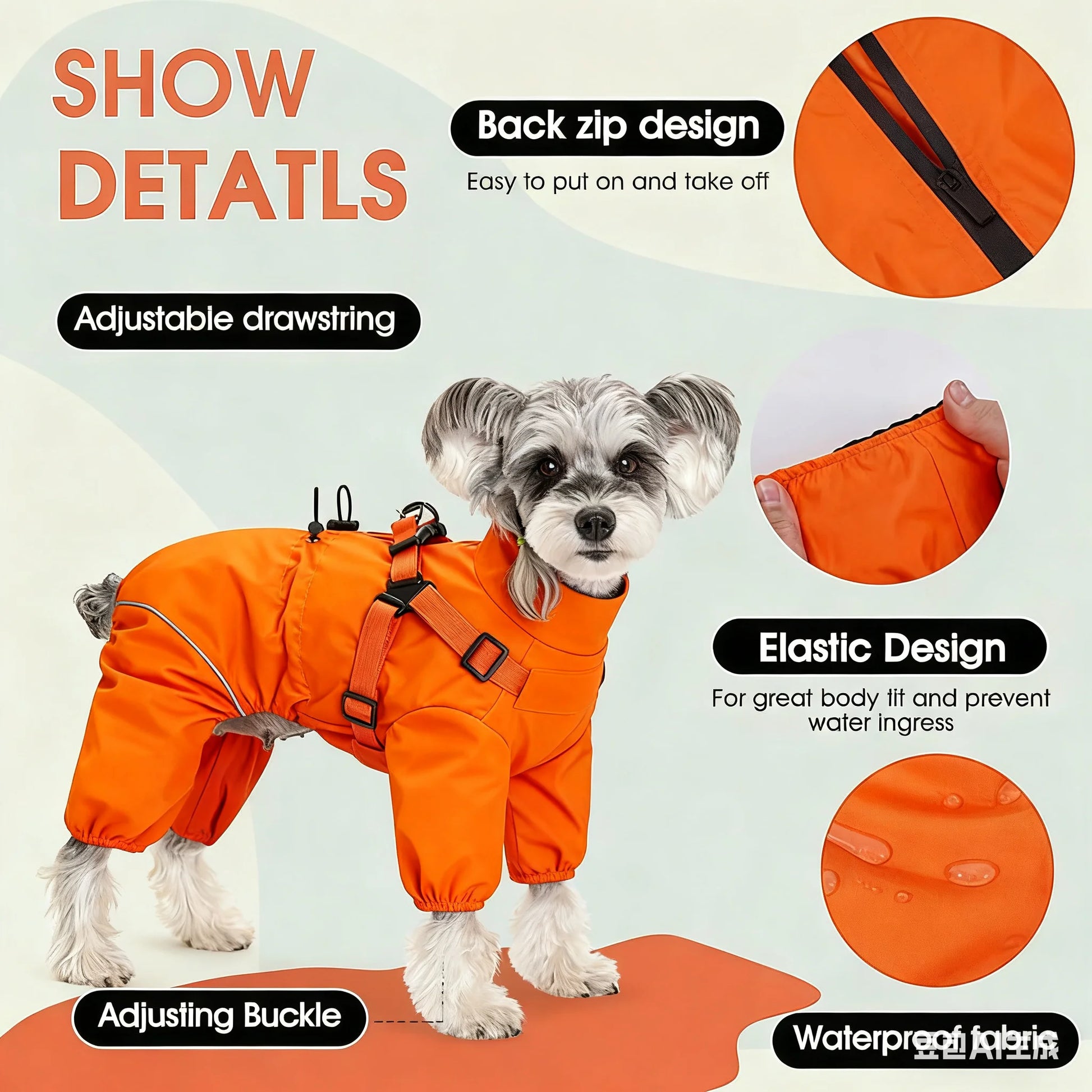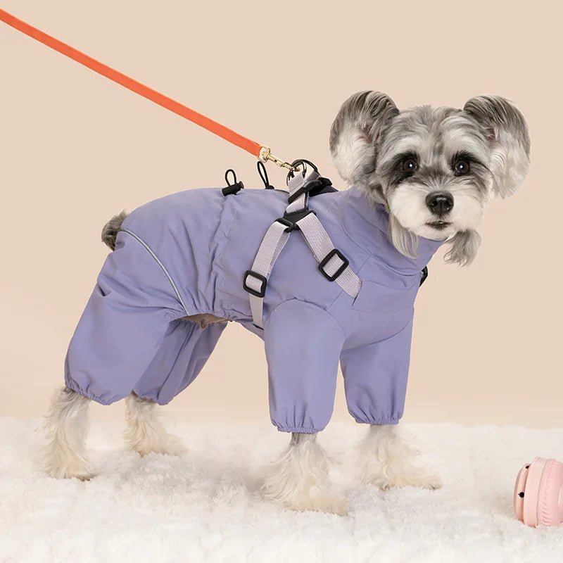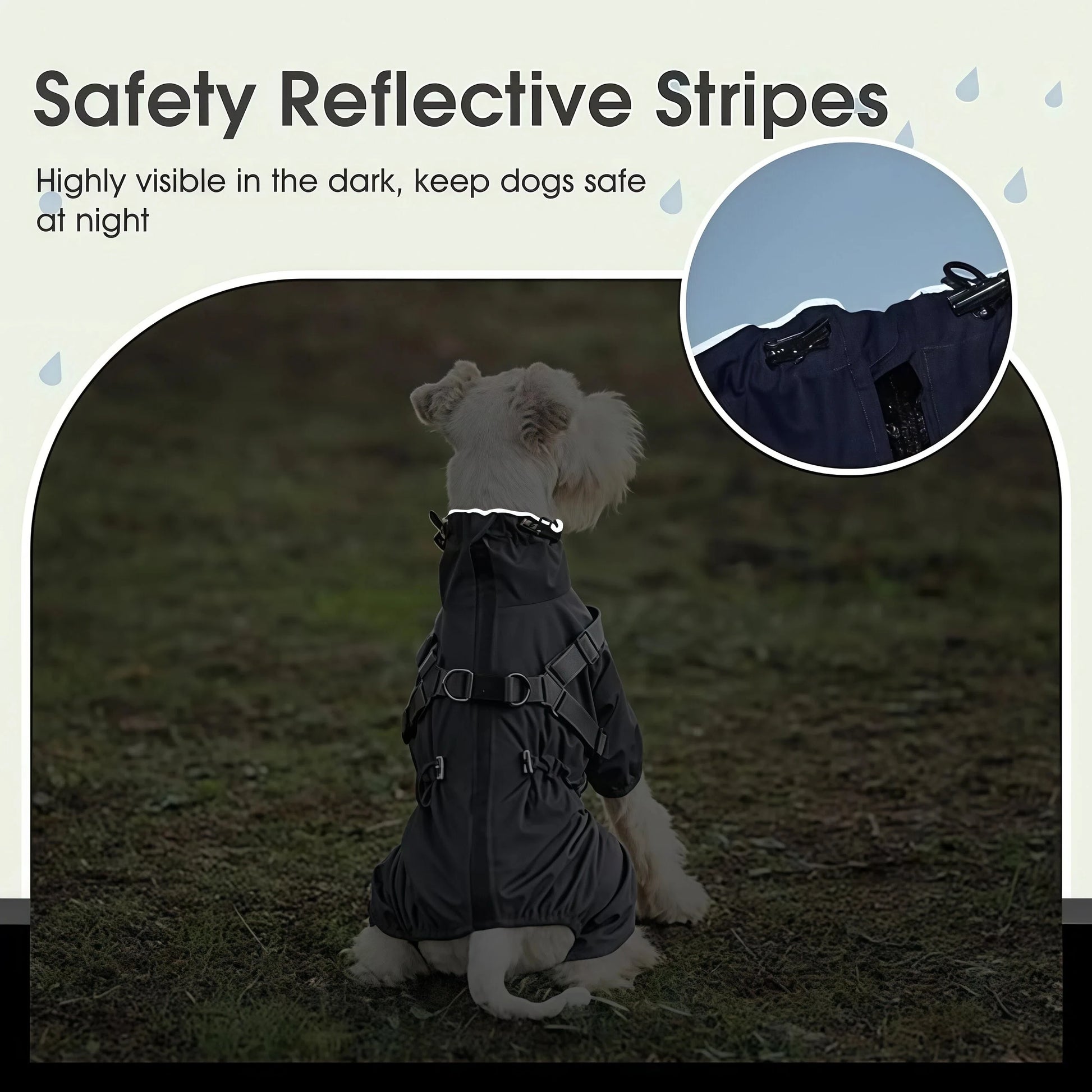 Autumn Winter Pet Dog Rain Jacket with Harness For Small Medium Large Dogs Waterproof Jumpsuit Reflective Puppy Outdoor Jacket