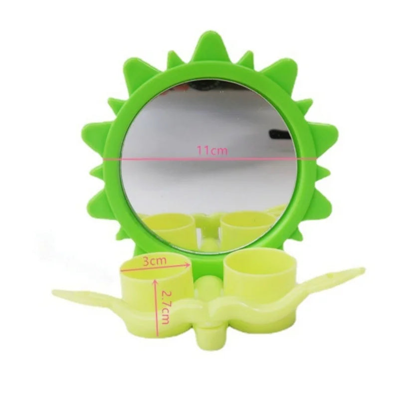 Bird Mirror Toy with Plastic Perch Stand Parrot Metal Fruit Vegetable Holder Feeder Lovebirds Finches Canaries Cage Accessories