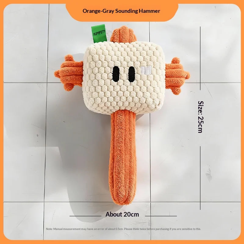 Chew Resistant Plush Hammer Dog Toy - Self Play Boredom Relief Rope Knot Squeaky Tug of War for Puppy Fun