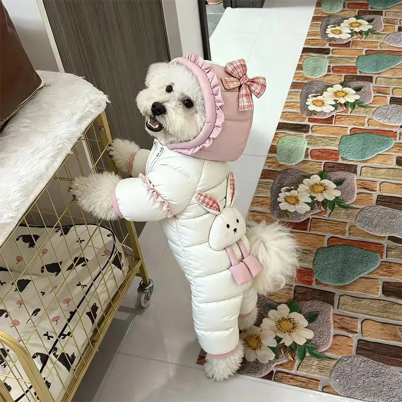 Dog Clothes with Leash Attachment Warm 4-Leg Jumpsuit Winter Coat for Small Dogs Cute Ribbon Bow Outfit for Teddy Poodle