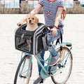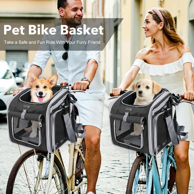 Dog or Cat Bike Basket, Expandable Soft Sided Pet Carrier Backpack with 4 Open Doors, Foldable Dog Bike Carrier