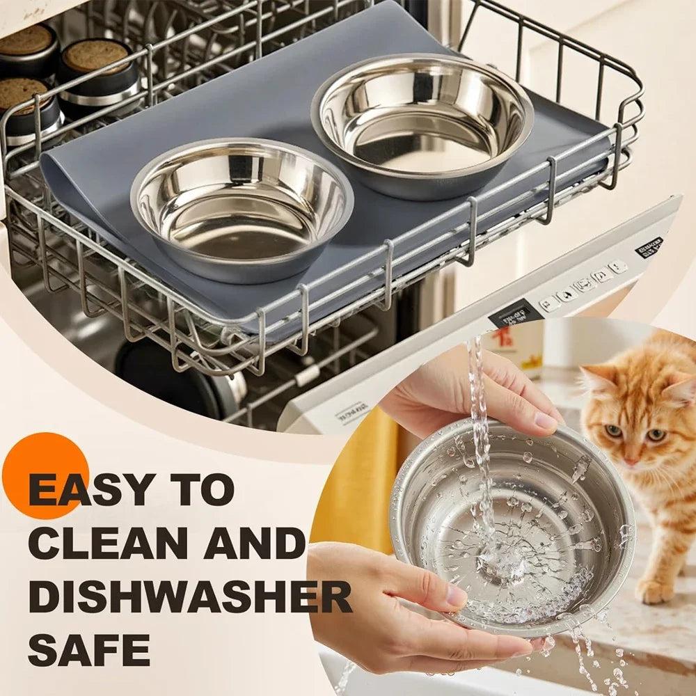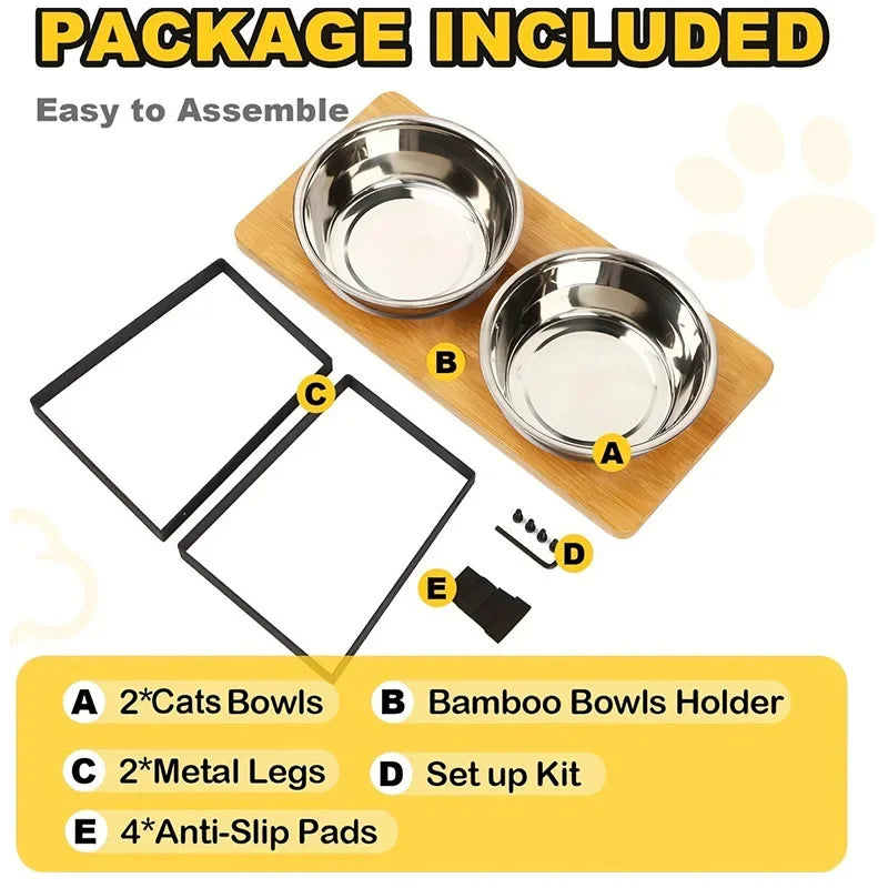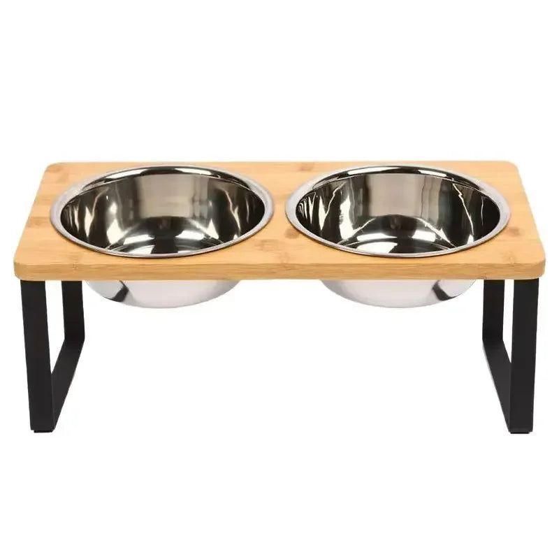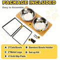 Elevated Cat Bowl Wooden 15° Tilted Raised Pet Bowl Stand with 2/3 Stainless Steel Bowl Neck Protection Dog Feeder Pet Supplies