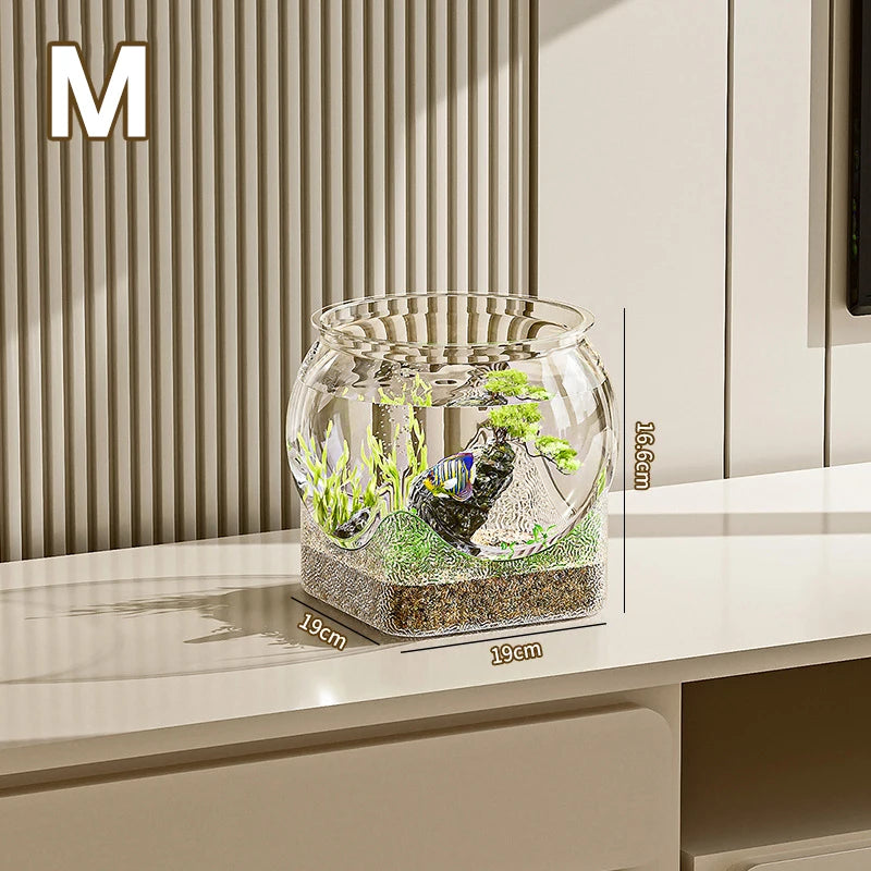 Fish Tank Aquarium Transparent Round Ornamental Portable Goldfish FishBowl Plastic Lightweight Aquarium for Fish Home Desk Decor
