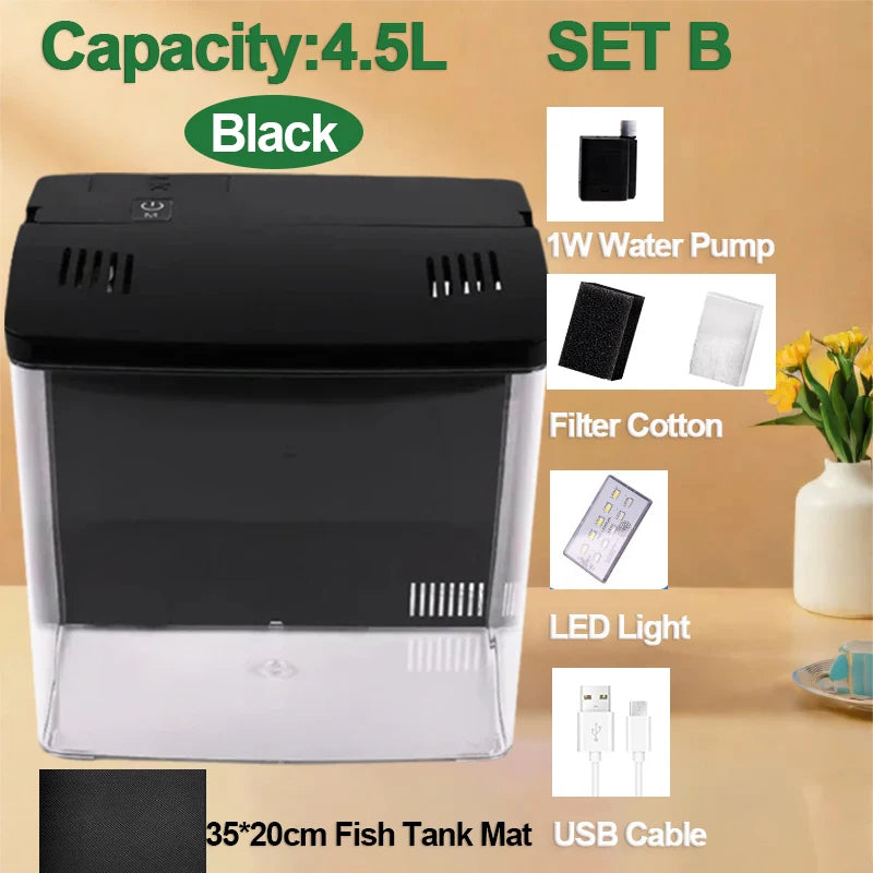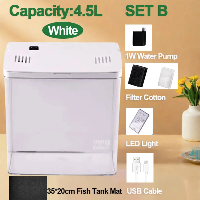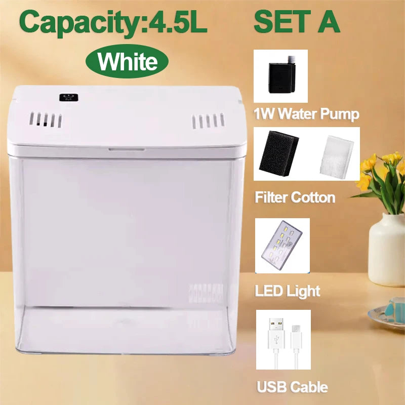 Fish Tank Mini Fish Tank Desktop Fish Tank Home With Led Light and Water Pump USB Connect Plastic Material Fish Tank