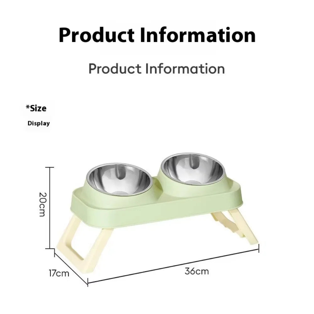 Foldable Stainless Steel Elevated Pet Bowl - Dual Dish Non-Slip Anti-Tip Raised Feeder with Neck Support for Cats Dogs