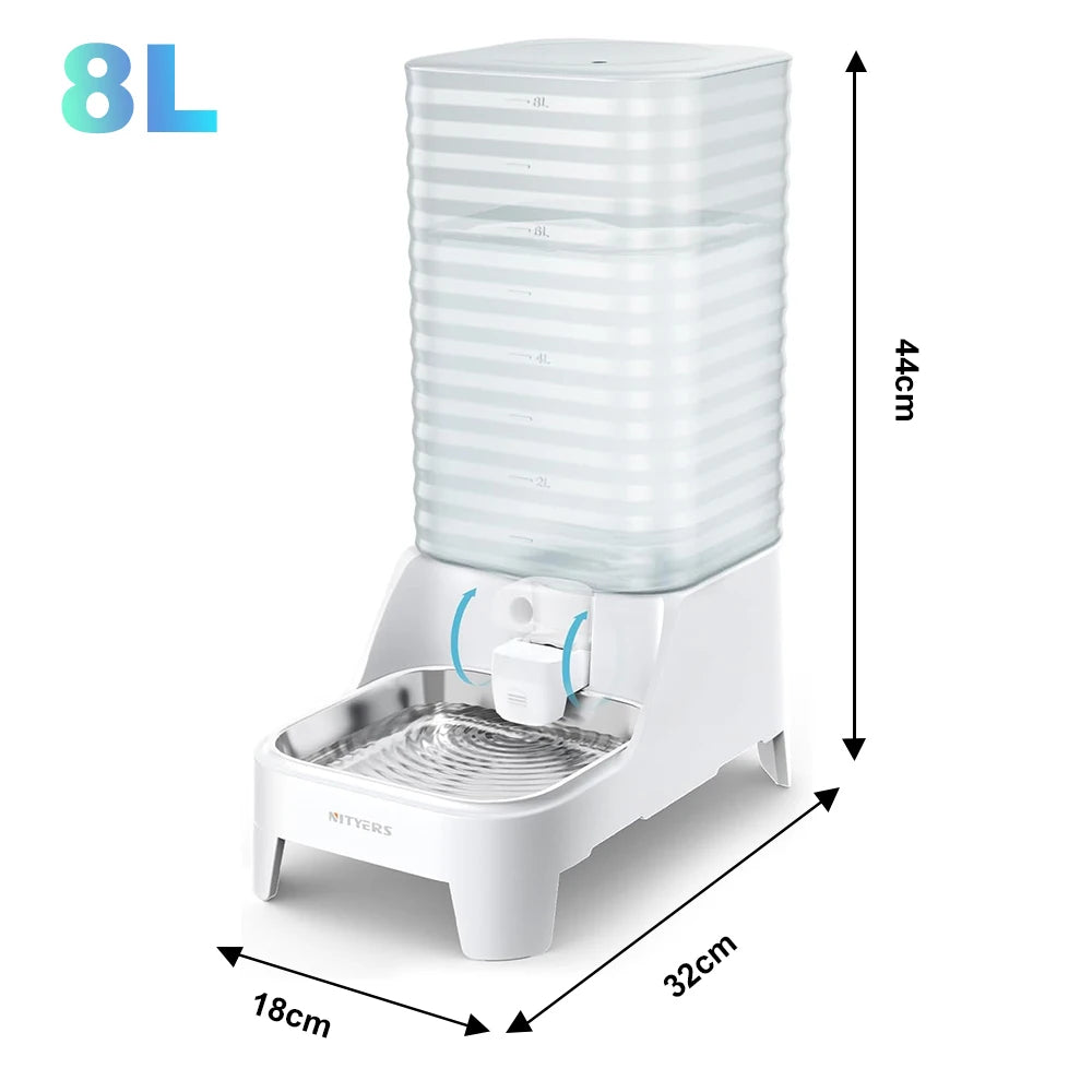 Furpipi 8L Large Capacity Automatic Pet Feeder & Water Dispenser Gravity Pet Feeding StationStainless Steel Pet Waterer for Pets