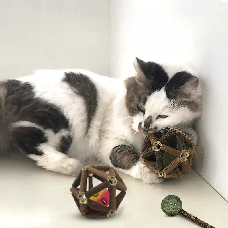 Natural Wooden Catnip Ball Toy - Engaging Chew and Play Solution for Cats
