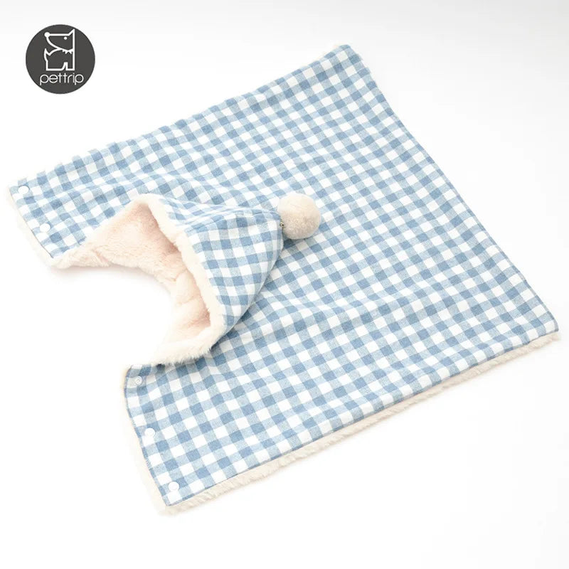 New Winter Plaid Pet Blanket Dog Sleeping Bag Cat Cloak Pet Coat Warm Coat Hooded Cloak Dog Coat Can Be Fixed To Prevent Falling