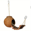 Parrot Natural Coconut Shell Bird Nest with Climbing Ladder, Cozy Hanging Parrot Original Wood for Birds Small Pet Shelter