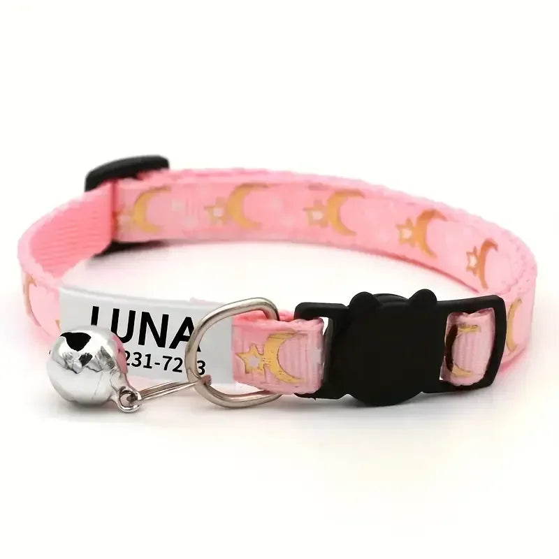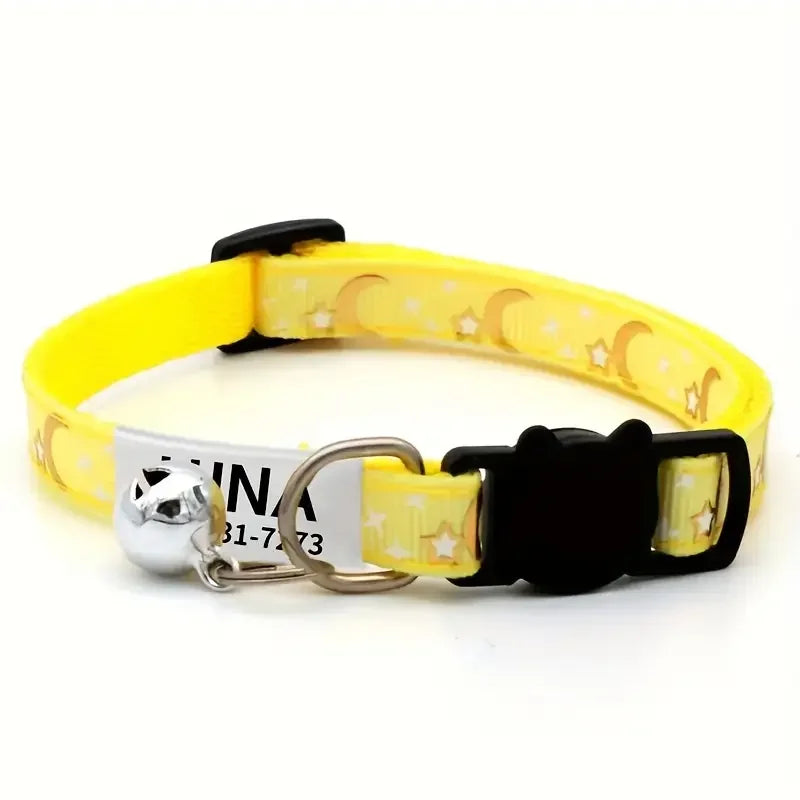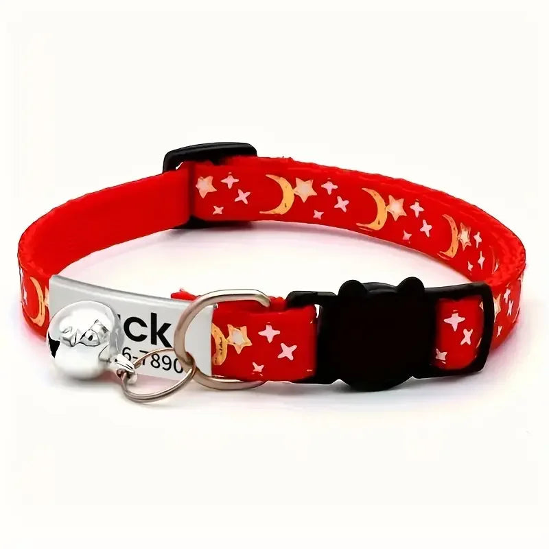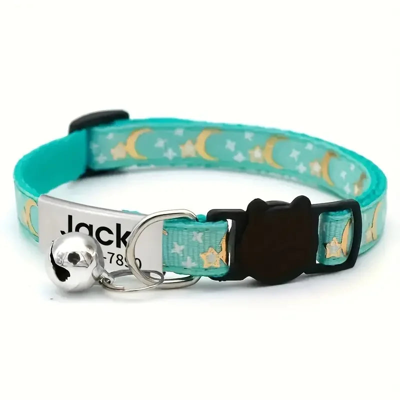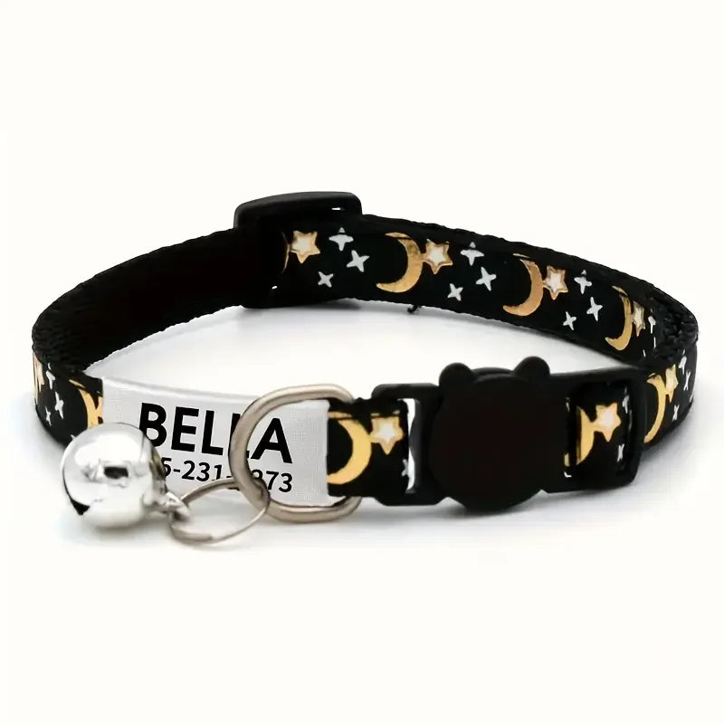 Personalized Customizable Star & Moon Quick Release Kitten Cat ID Collar Puppy Dog Collars Engraved Tag Set With Bell For Small