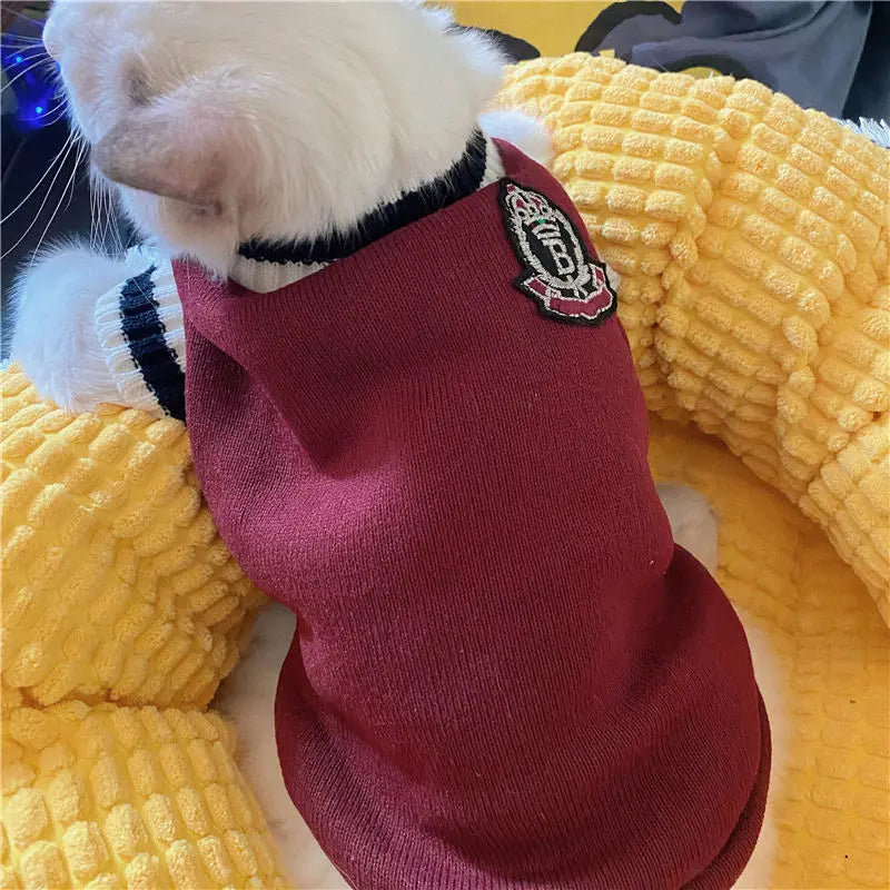Pet Dog Knitted Sweater Clothes for Small Medium Dogs,Winter Warm Padded V-neck Dog School Uniform,Chihuahua French Bulldog Coat