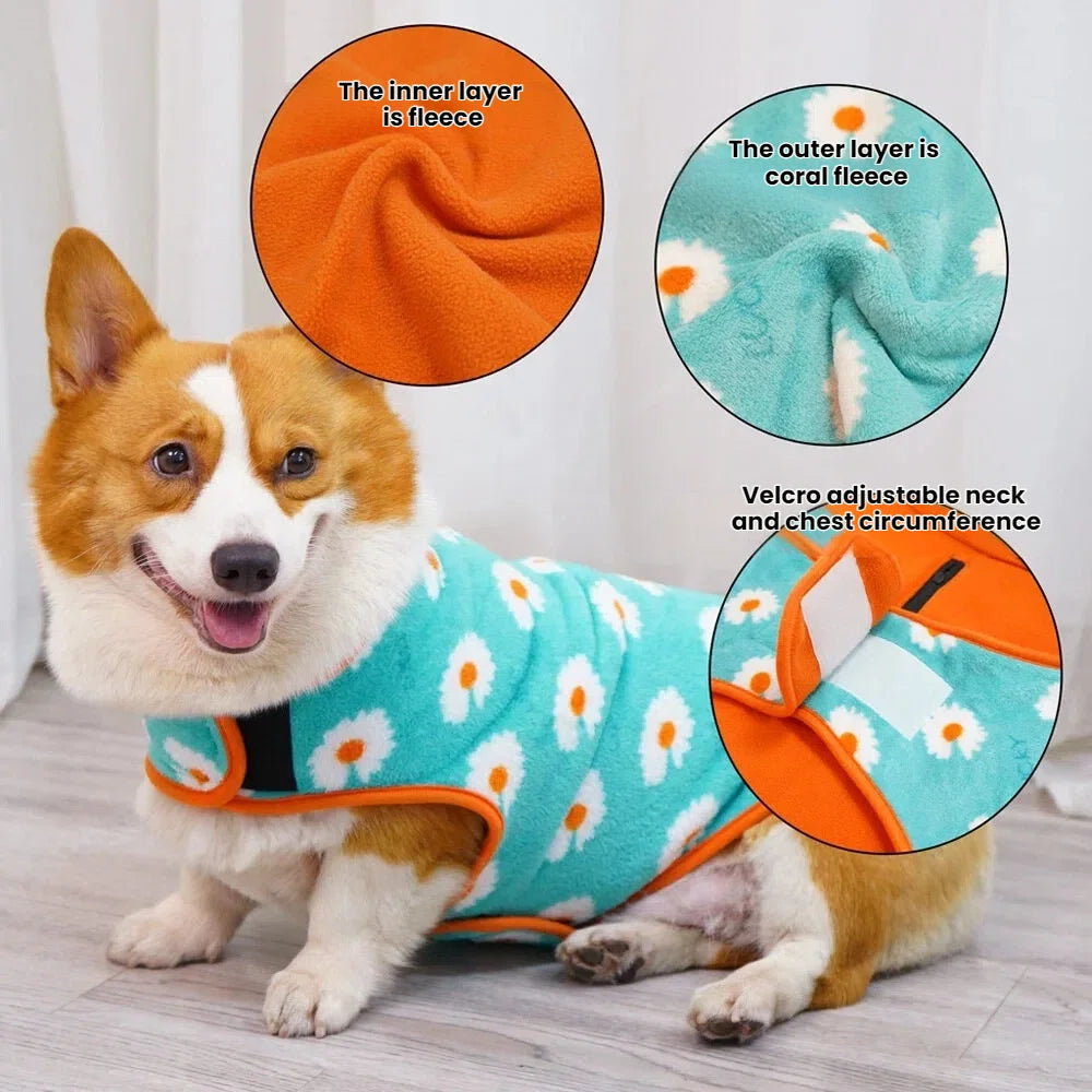 Pet Dog Warm Fleece Coat Autumn Winter Pet Clothes For Small Medium Large Dogs Adjustable Soft Dog Plush Hoddie with Leash Hole