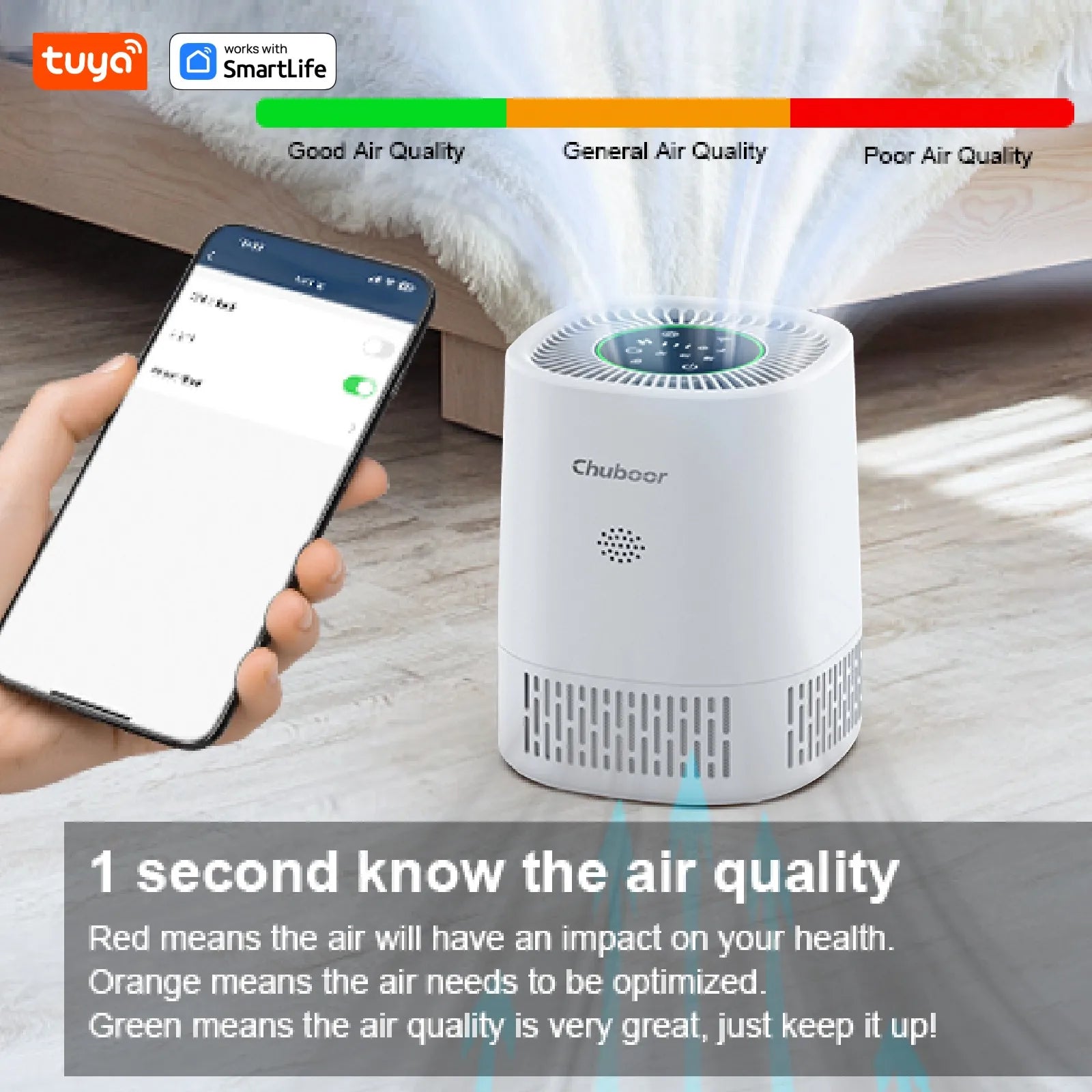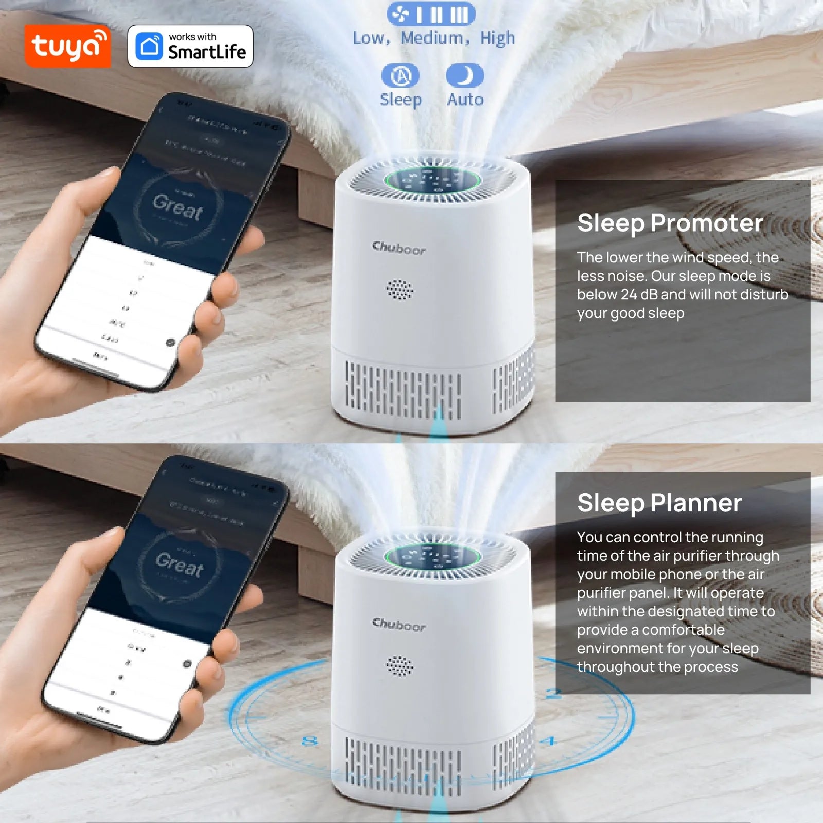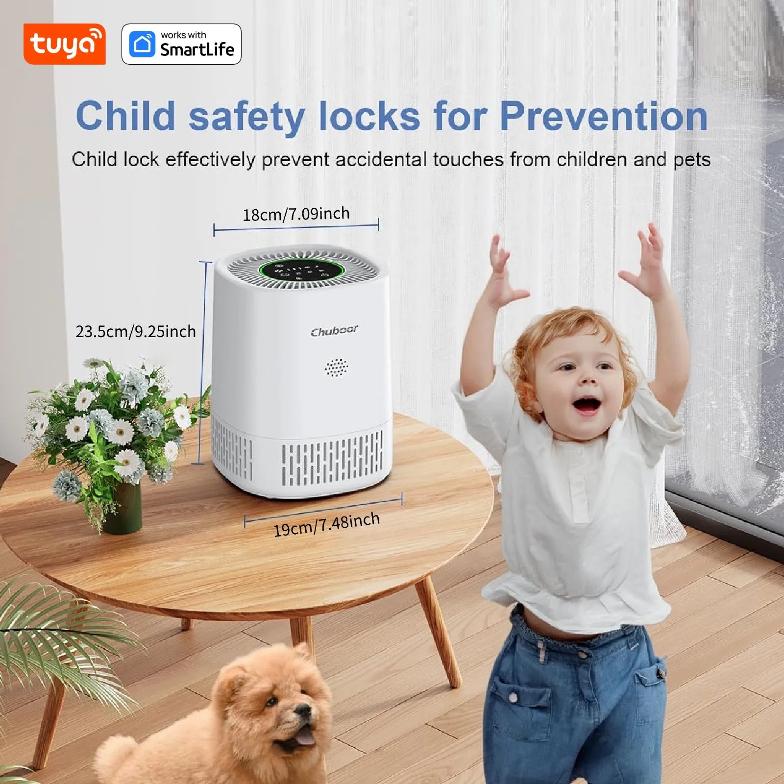PJ07 Pro Tuya Smart Air Purifier, App Control & Timer,24dB 3-Speed H13 HEPA+Carbon,15㎡for Office/Study/Baby Room, Alexa/Google