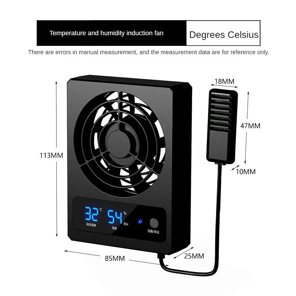 Reptile Temperature Humidity Controlled Fan With LED Display Smart Cooling Fan Strong Wind Low Noise Amphibians Reptiles
