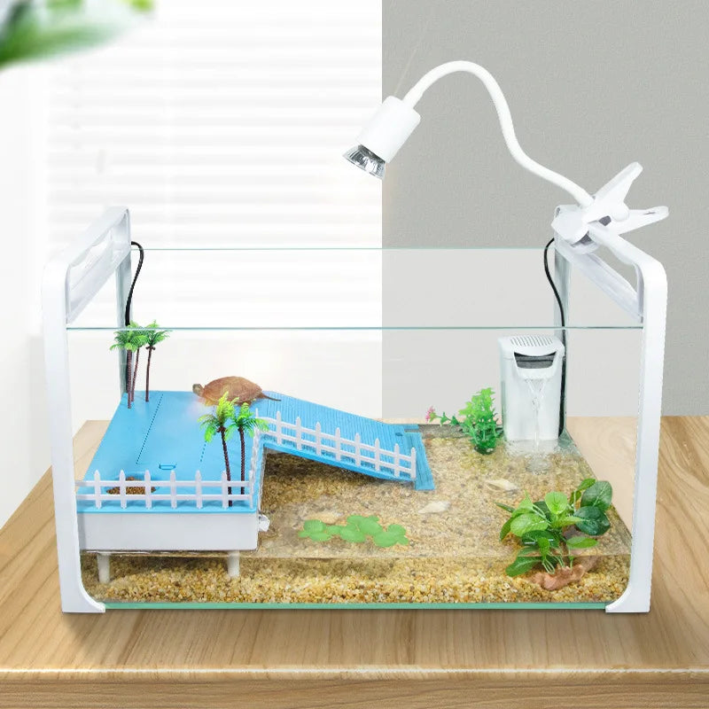 Reptile Tortoise Terrace Turtle Tank Floating Basking Platform Turtle Pier Terrapin Dock Reptile Ramp Platform with Water Pump