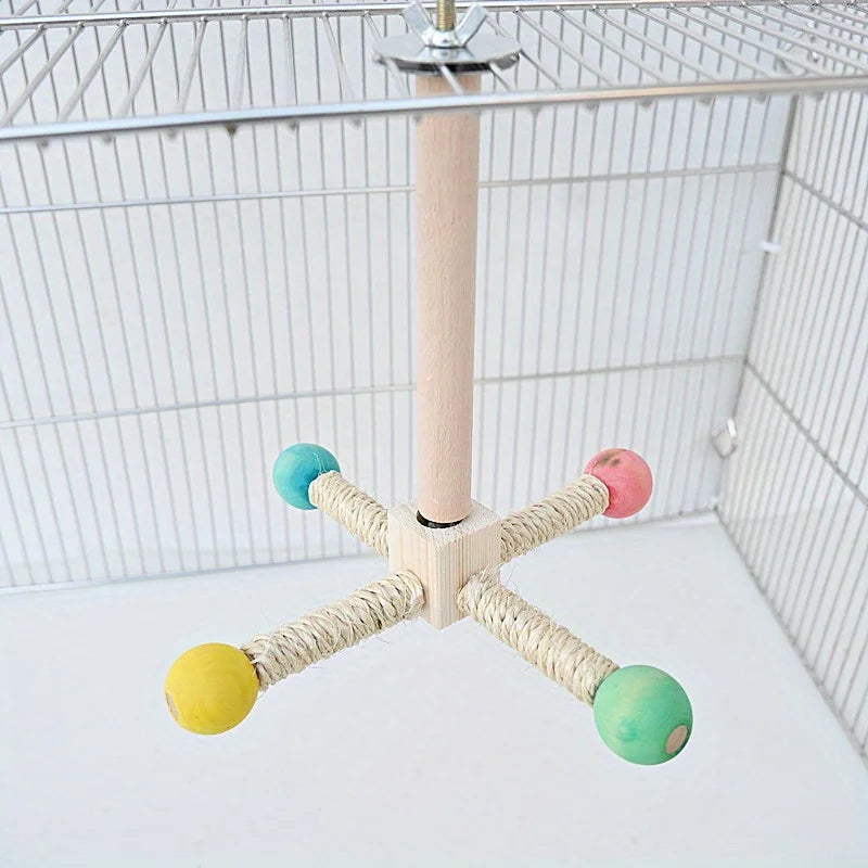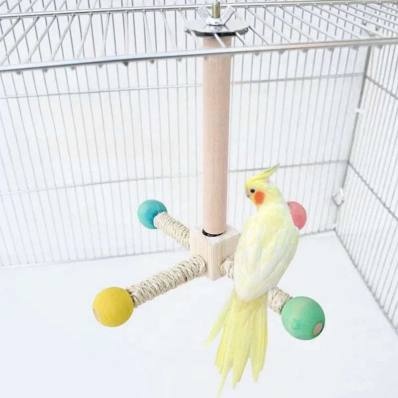 Rotating Bird Perch Stand with Bearing for Parrots - Durable Cork Material, Interactive Enrichment Play Toy for Cage Bird Toys