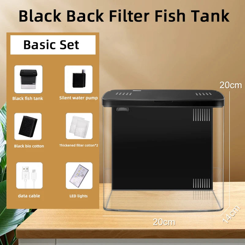 Self circulating household desktop fish tank, living room landscaping, small aquarium, back filter goldfish tank