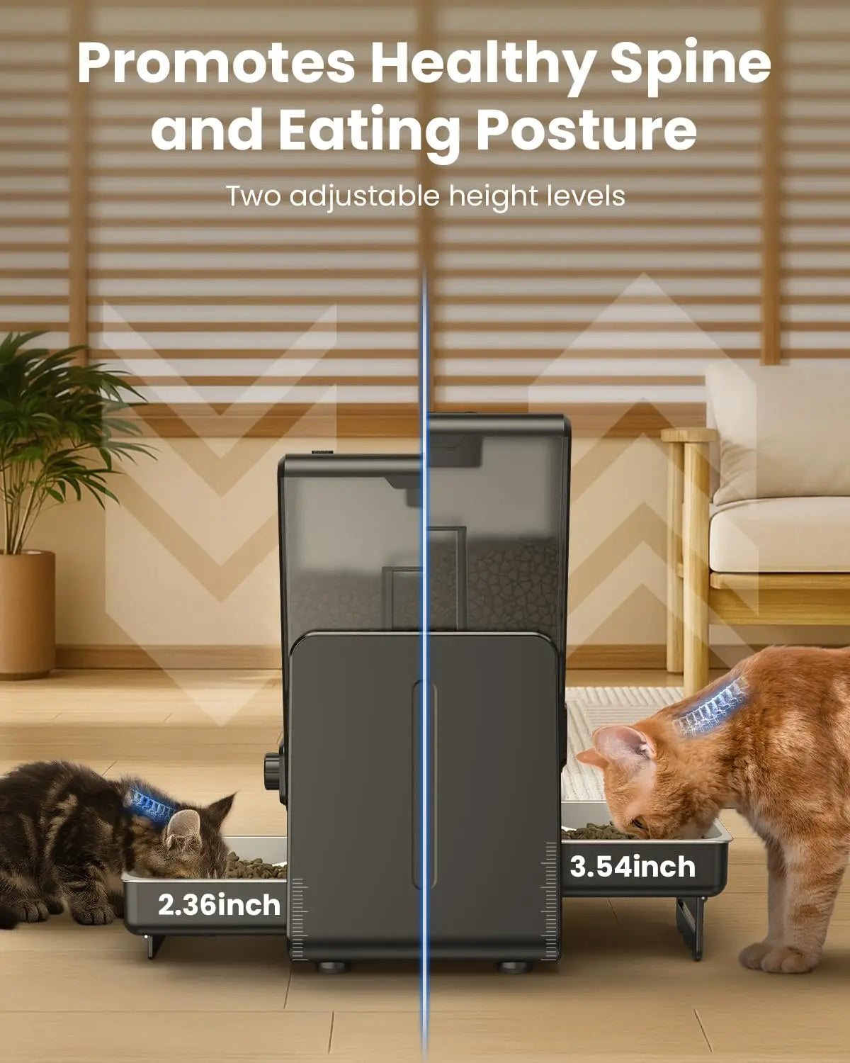 Smart 5G WiFi Automatic Cat Feeder 2 Bowls - 5L/20 Cups Adjustable Height Pet Dry Food Dispenser for 2 Cats & Small Pets