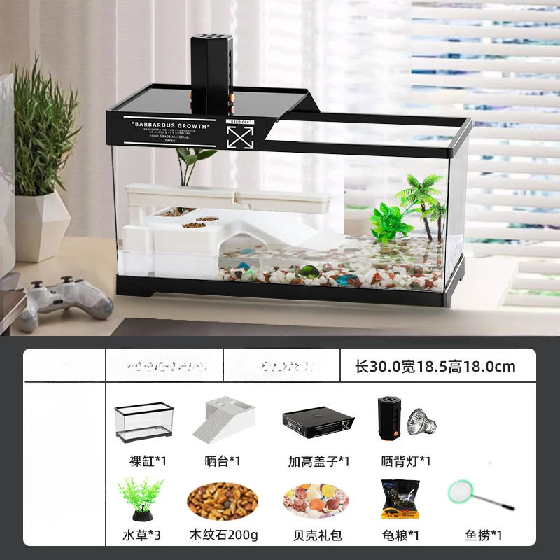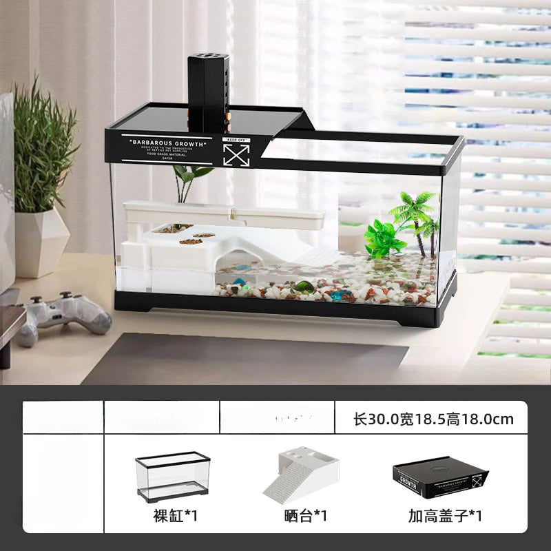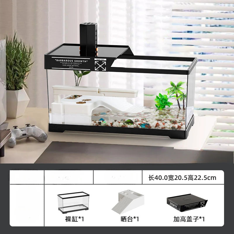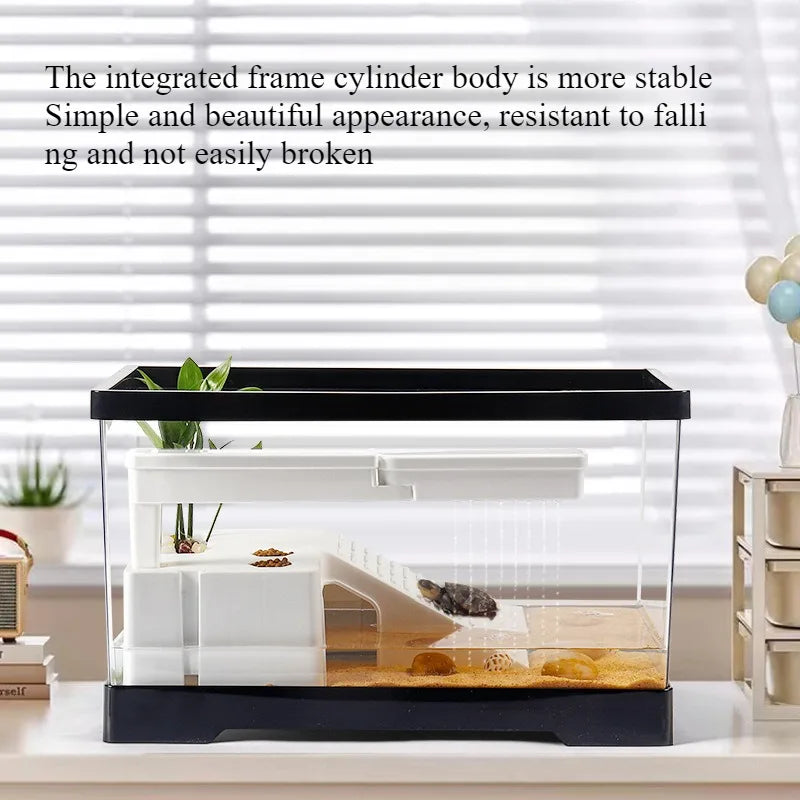 Turtle Feeding Tank and Pet Fish Tank Home Turtle Box with Climbing Platform Pet Villa Ecological Landscape Aquarium Accessories
