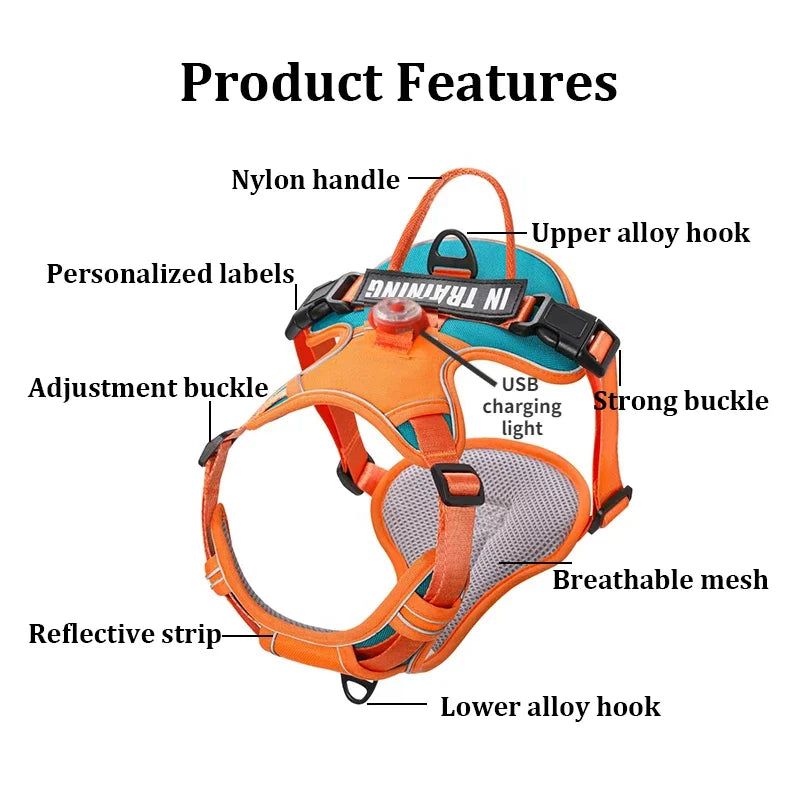USB charged light Dog Harness Personalized dog strap vest Breathable adjustable pet strap suitable for small to medium sized dog