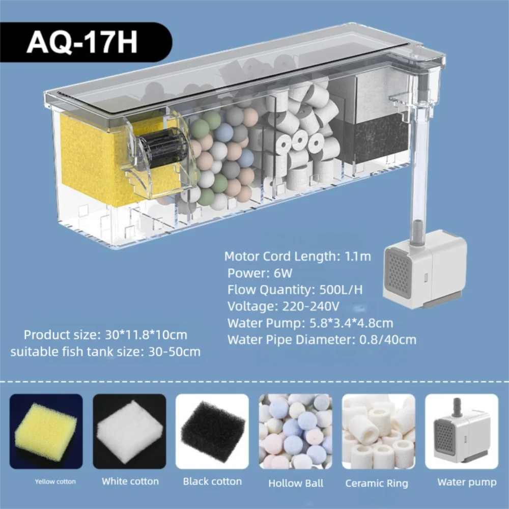 Wall Mounted Fish Tank Built-in Silent Waterfall Filter Box Circulating With Water Pump Circulating Water Purifier for Home
