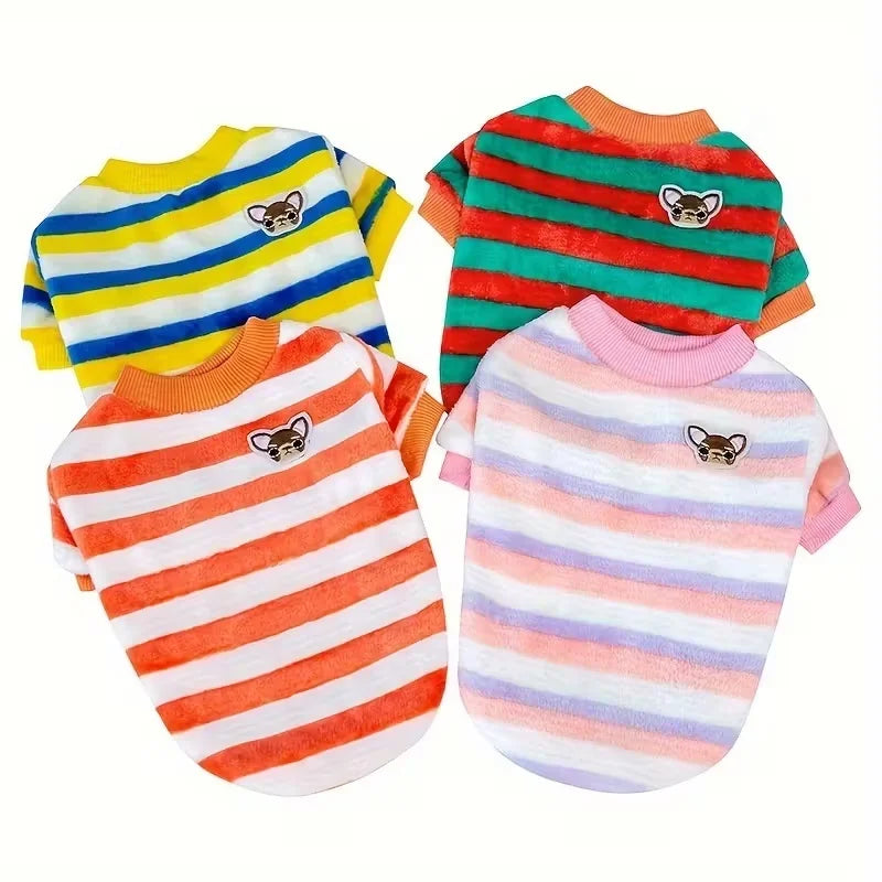 Winter Fleece Pet Clothes Striped Puppy Dog Coat Jacket Small Medium Dogs Sweatshirt Cute Costume Pet Outfits